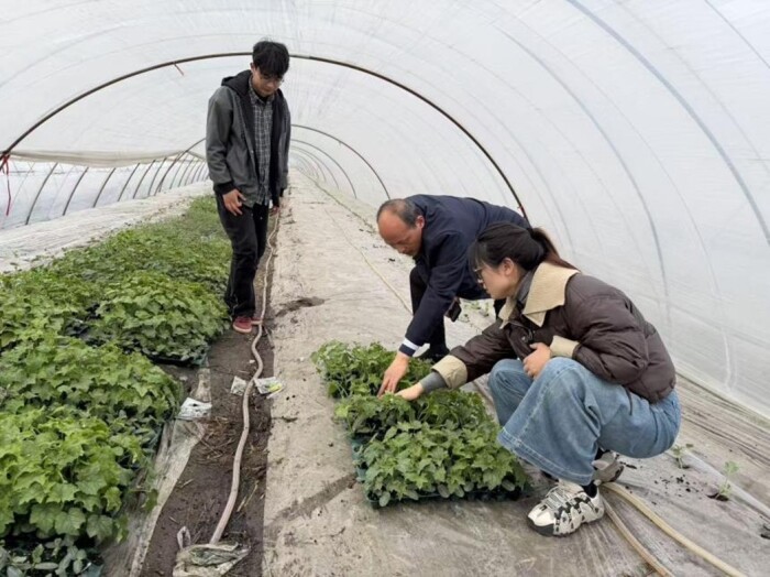 会后,钱春桃教授一行前往泰州所丝瓜育种基地,实地查看丝瓜田间育苗情况,针对性指导丝瓜育苗、性状鉴定及抗病品种筛选等工作,为优质丝瓜新品系创制夯实基础。